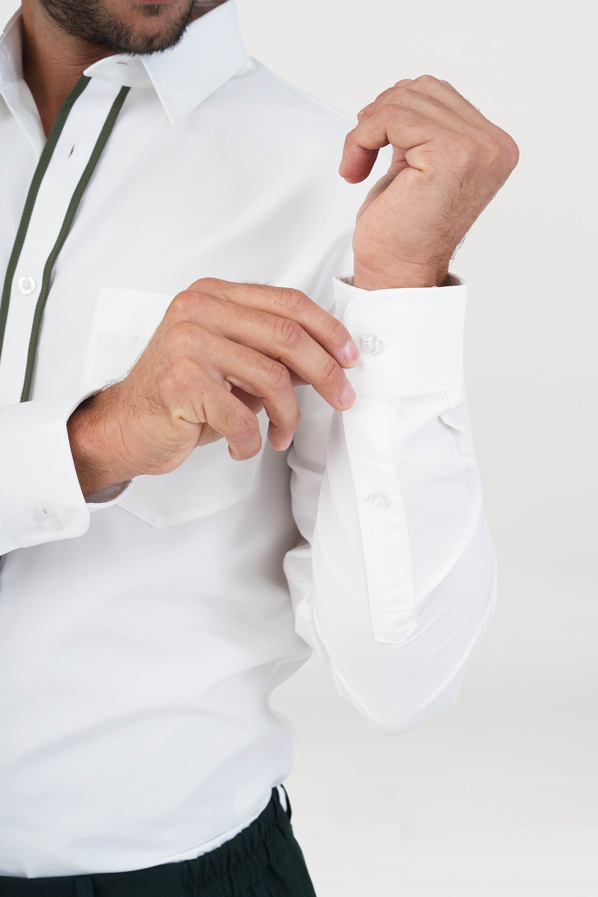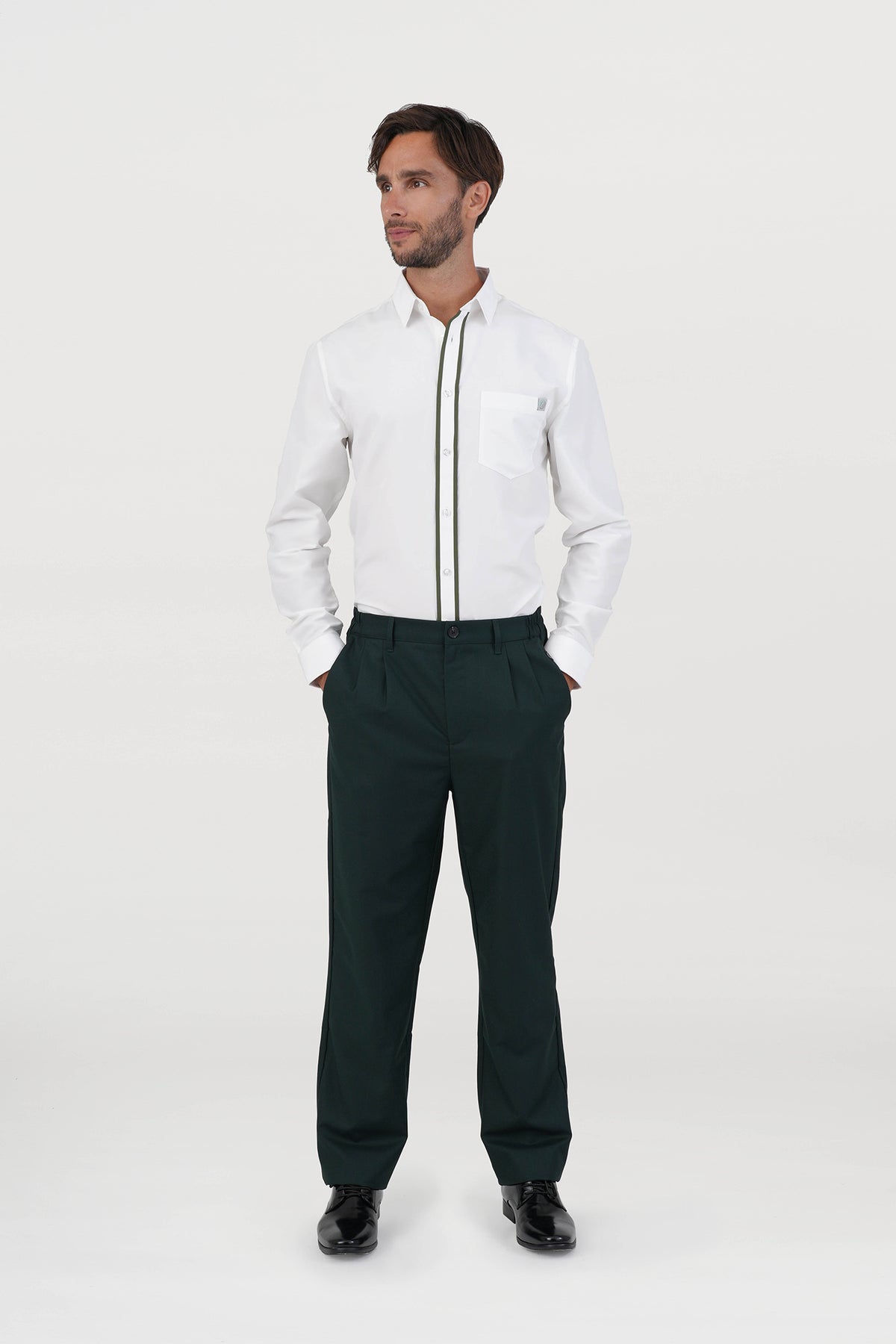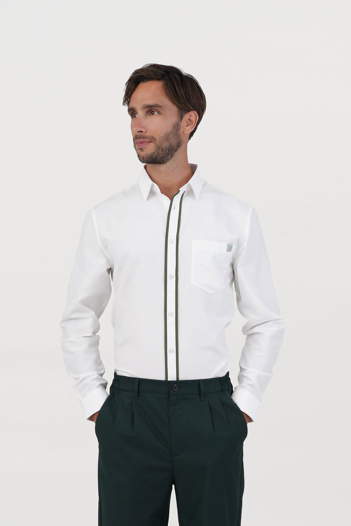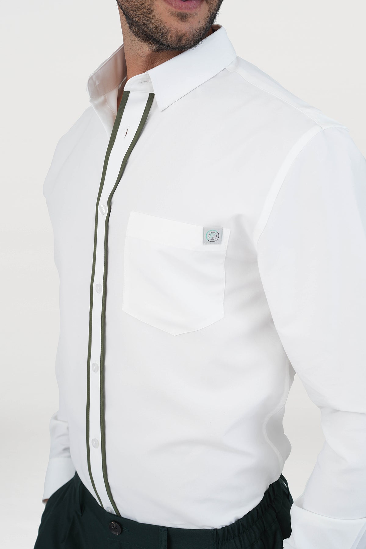 - Design: Double contrast color piping at placket